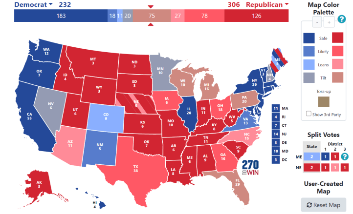 Pour suivre ma vision du rapport de force pour l’année en cours, vous pourrez suivre sur la page sondage présidentielle du blog, l’évolution des sondages entre Biden et Trump et qui est le mieux placé dans chacun de ces états.