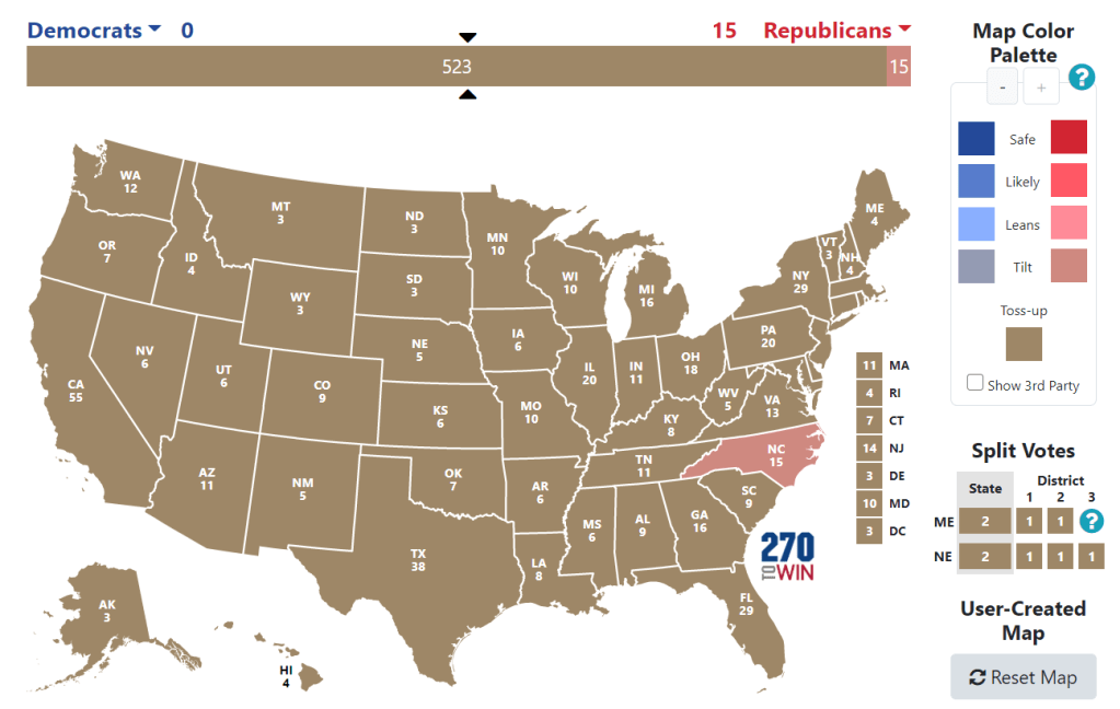 Chaque semaine, je publierai un article sur les états clés qui permettront à l’un des 2 candidats, Biden ou Trump, d’atteindre la barre fatidique des 270 grands électeurs, synonyme d’élection. Quatorzième chapitre du dossier Route 270 aujourd’hui, avec un focus sur l’Etat de Caroline du Nord et ses 15 grands électeurs en jeu en 2020.