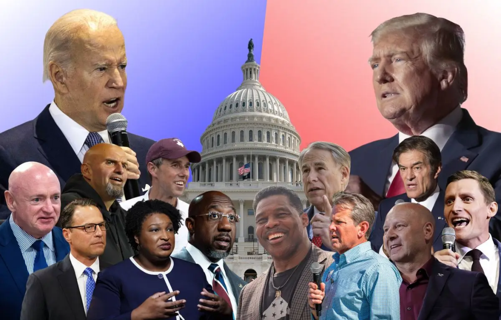 Passons au Sénat où la mécanique est quelque peu différente. Composé de 100 membres (2 sénateurs par Etat) élus pour un mandat de 6 ans, le Sénat est renouvelé par tiers tous les 2 ans. Cette année, 35 sièges seront en jeu : 21 sont détenus par les républicains et 14 par les démocrates. La chambre actuelle compte exactement 50 sénateurs républicains et 50 sénateurs démocrates. Les républicains ont donc davantage à perdre dans ce cycle surtout qu’il faut renouveler le tiers élu en 2016 lors de la victoire de Donald Trump. Il s’agira donc d’un véritable test de résilience pour l’ancien président américain et le courant trumpiste. S’il parvient à arracher une majorité au Sénat, sa côte devrait atteindre le zénith surtout que la plupart des candidats nommés sont de fervents soutien de Trump. Côté démocrate, la perte du Sénat serait un sévère coup porté au reste du mandat de Joe Biden qui se retrouverait quasiment dans la position du « lame duck » soit un « canard boiteux » c’est-à-dire un Président empêché de gouverner pour la fin de son mandat et en incapacité de pouvoir se succéder à lui-même, ce qui n’est pas le cas ici même si Joe Biden atteindra l’âge vénérable de 82 ans en 2024.