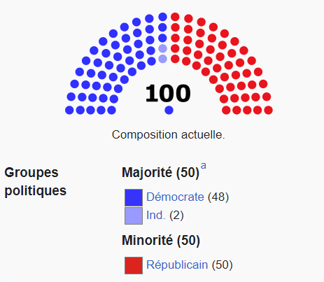 En effet, le Sénat joue un rôle plus important que la chambre des Représentants dans la Constitution américaine du fait de ces pouvoirs exclusifs et de la durée plus longue du mandat des sénateurs. En plus du pouvoir législatif, le Sénat peut contrôler le pouvoir exécutif : passage en revue des membres du gouvernement, qui sont confirmés ou non par le Sénat, pouvoir de destitution via l’impeachment et élection du Vice-Président dans le cas où il n’y a pas de majorité claire suite à l’élection. Le Vice-Président, Kamala Harris, est d’ailleurs le 101ème membre de cette assemblée et peut voter dans le cas d’un 50/50 sur un texte ce qui est arrivé fréquemment dans le mandat actuel. Enfin, le Sénat peut ratifier les traités et a donc un pouvoir sur la politique internationale.