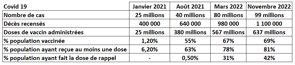 A partir d’avril 2022, les cas de covid-19 diminuent sensiblement ainsi que le taux de mortalité du fait de la faible létalité du variant Omicron. Dès le 18 avril, un juge fédéral met fin aux obligations de port du masque dans les transports et le 26 avril, le Dr Fauci considère que le pays est officiellement sorti de la phase de pandémie pour entrer dans l’ère endémique où la population va pouvoir vivre avec le virus. Le 12 juin, les Etats-Unis abandonnent le test obligatoire pour les voyageurs internationaux mais le vaccin reste un prérequis pour entrer sur le sol américain. Excepté cette contrainte, on peut parler d’un retour à la vie normale au sein du pays. Le 18 septembre, Joe Biden s’adresse à la Nation pour annoncer la nouvelle attendue depuis 2 ans et demi : l’épidémie est terminée aux Etats-Unis. Toutefois, la maladie continue d’ôter la vie à environ 400 personnes par jour dans le pays. Le coronavirus n’est, de ce fait, plus un sujet d’inquiétude pour les américains. Seuls 23% des électeurs ont encore une crainte d’une résurgence de la pandémie à quelques jours de l’élection.