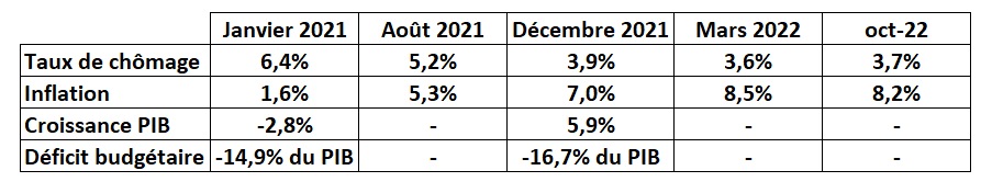 La dernière période du mandat de Joe Biden ne change pas de la précédente. Le chômage est désormais stabilisé à un niveau bas et l’inflation se maintient à des taux élevés. D’après le Wall Street Journal de juillet 2022, les finances des ménages sont solides grâce à l’argent économisé durant la pandémie et le marché du travail est bon même s’il existe d’importantes pénuries de main d’œuvre dans des secteurs comme la restauration. Les ménages ont accumulé 5 milliards de dollars de plus sur le premier trimestre de 2022 dans leurs comptes d’épargne ou de dépôt par rapport au trimestre 2019 précédant le début de la pandémie. C’est en réduisant le déficit que Biden compte atténuer les pressions inflationnistes de l’économie américaine. Le déficit devrait, d’ailleurs, diminuer de 1 000 milliards de dollars en 2022. Ce discours est, néanmoins, inaudible auprès des consommateurs américains qui souhaitent des résultats immédiats et la confiance de l’opinion publique dans la politique économique de Biden est entamée sévèrement.