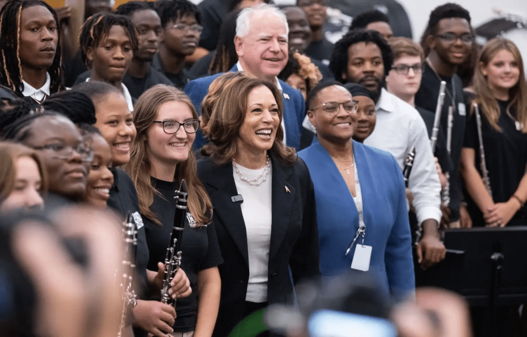 - Kamala Harris joue la carte du centrisme. Bien que plus à gauche politiquement que Biden, Harris a compris que les américains souhaitaient appliquer la politique de Trump sans Trump, en particulier sur le volet migratoire. Elle a donc durci certaines de ses positions politiques et se présente comme une figure d’autorité intransigeante jouant sur son passé de procureur de Californie.