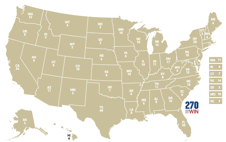Répartition du collège électoral par Etat pour l’élection de 2024