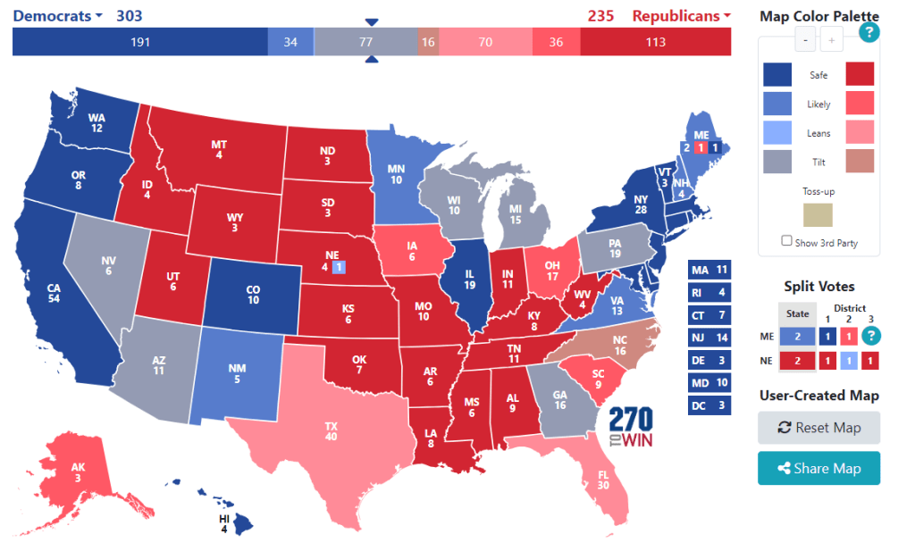 Une fois que vous maîtrisez cette carte, le calcul est simple : le candidat qui obtient 270 grands électeurs ou plus gagne le scrutin.