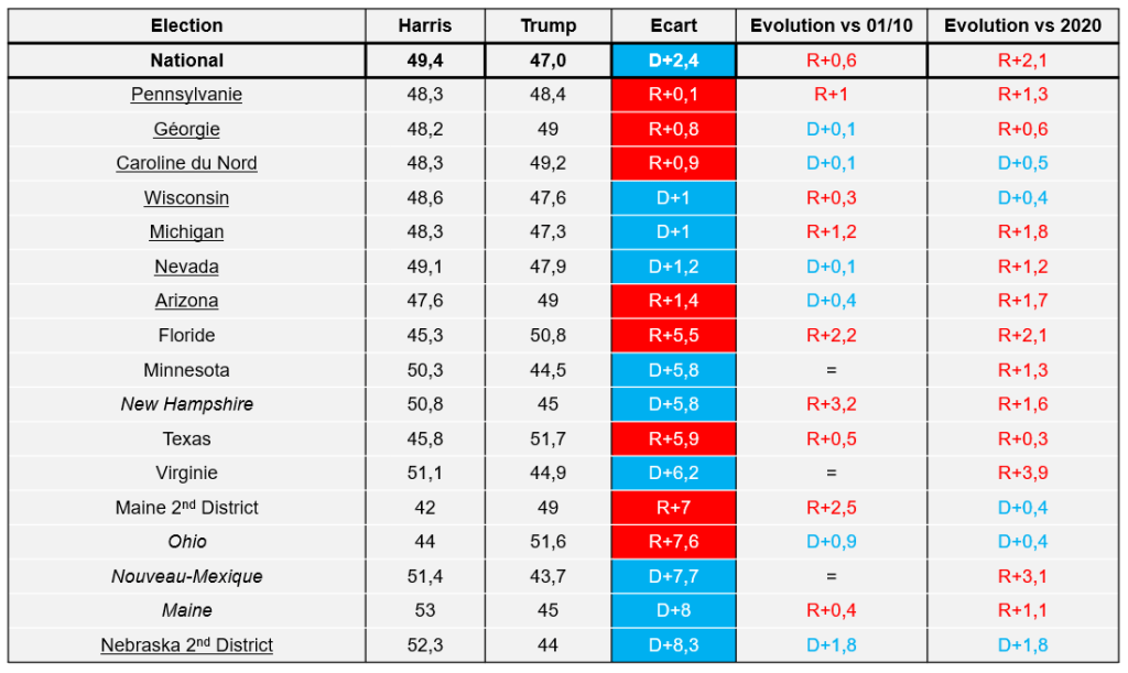 Trump passe devant en Pennsylvanie, 7 états se jouent à moins de 2 points !