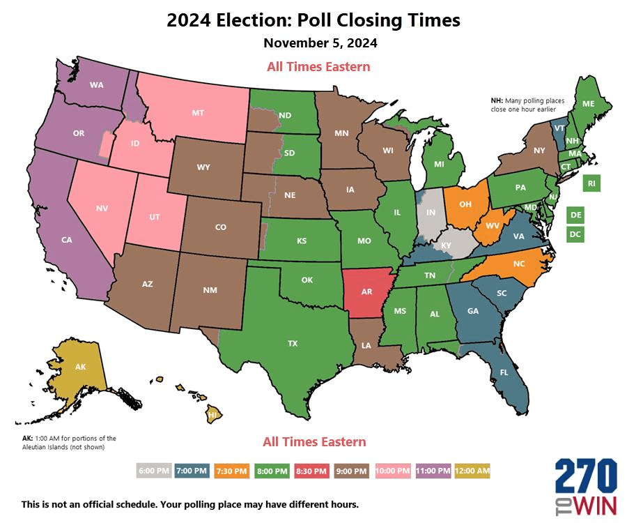 00h45 : Le dépouillement a commencé au Kentucky et en Indiana, deux états très favorable à Trump. Bonjour à la carte !