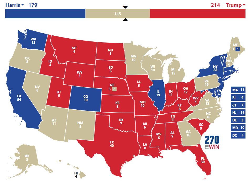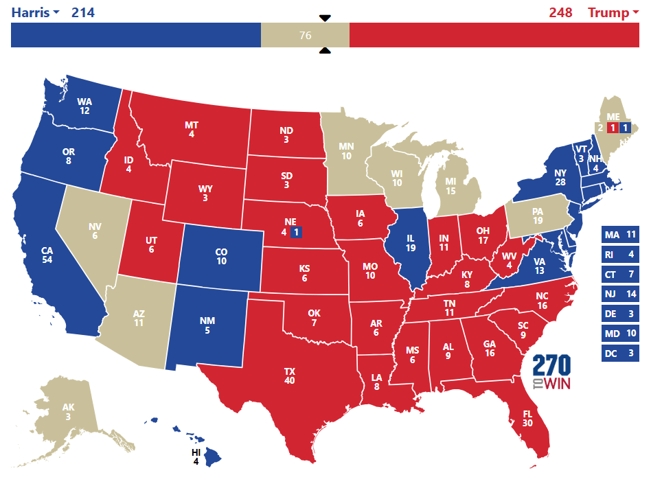 5h10 : Donald Trump remporte l’Idaho, Kamala Harris remporte la Californie et Washington. On attend maintenant qu’un swing state tombe officiellement chez Trump.